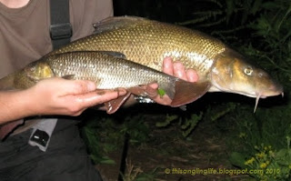 Soon after I was joined by a lad that came crashing through the undergrowth behind me. "You just caught a Barbel"? was the greeting. "
